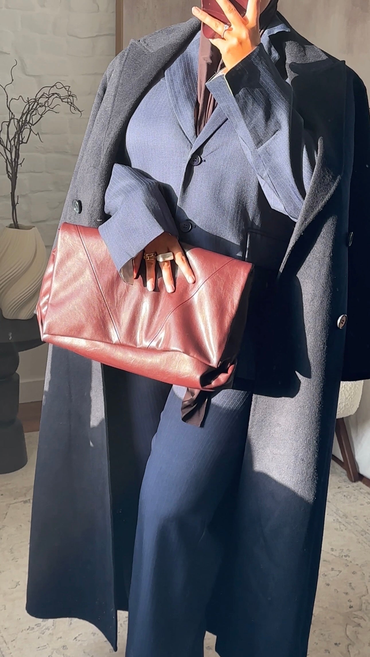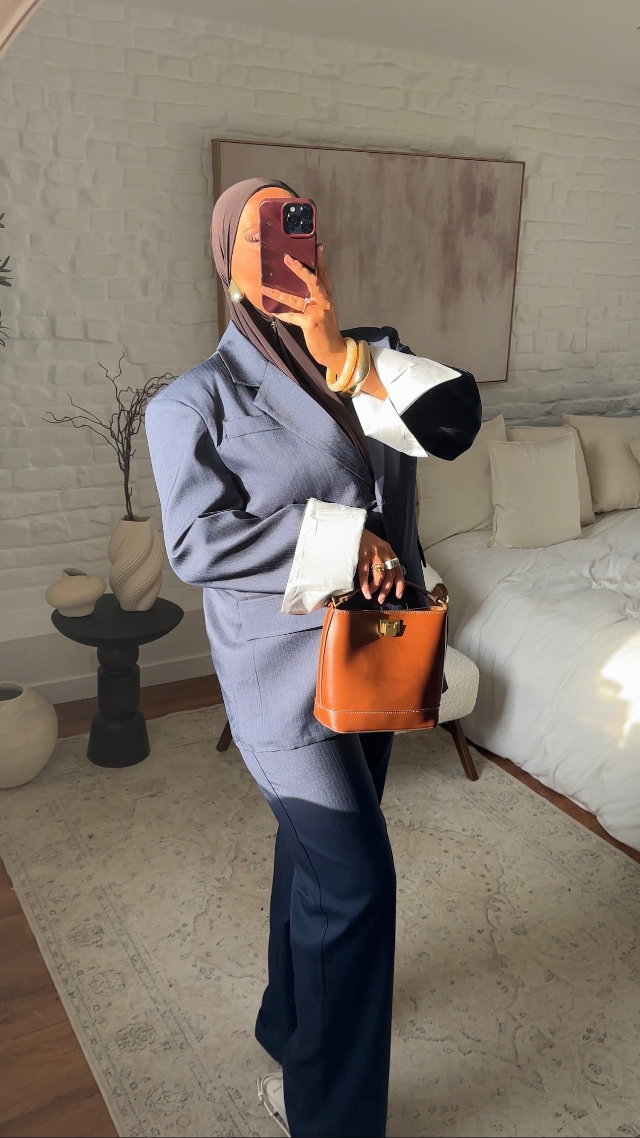 Set blazer oversize rayé et pantalon ultra long rayé oversize droit | Bleu marine