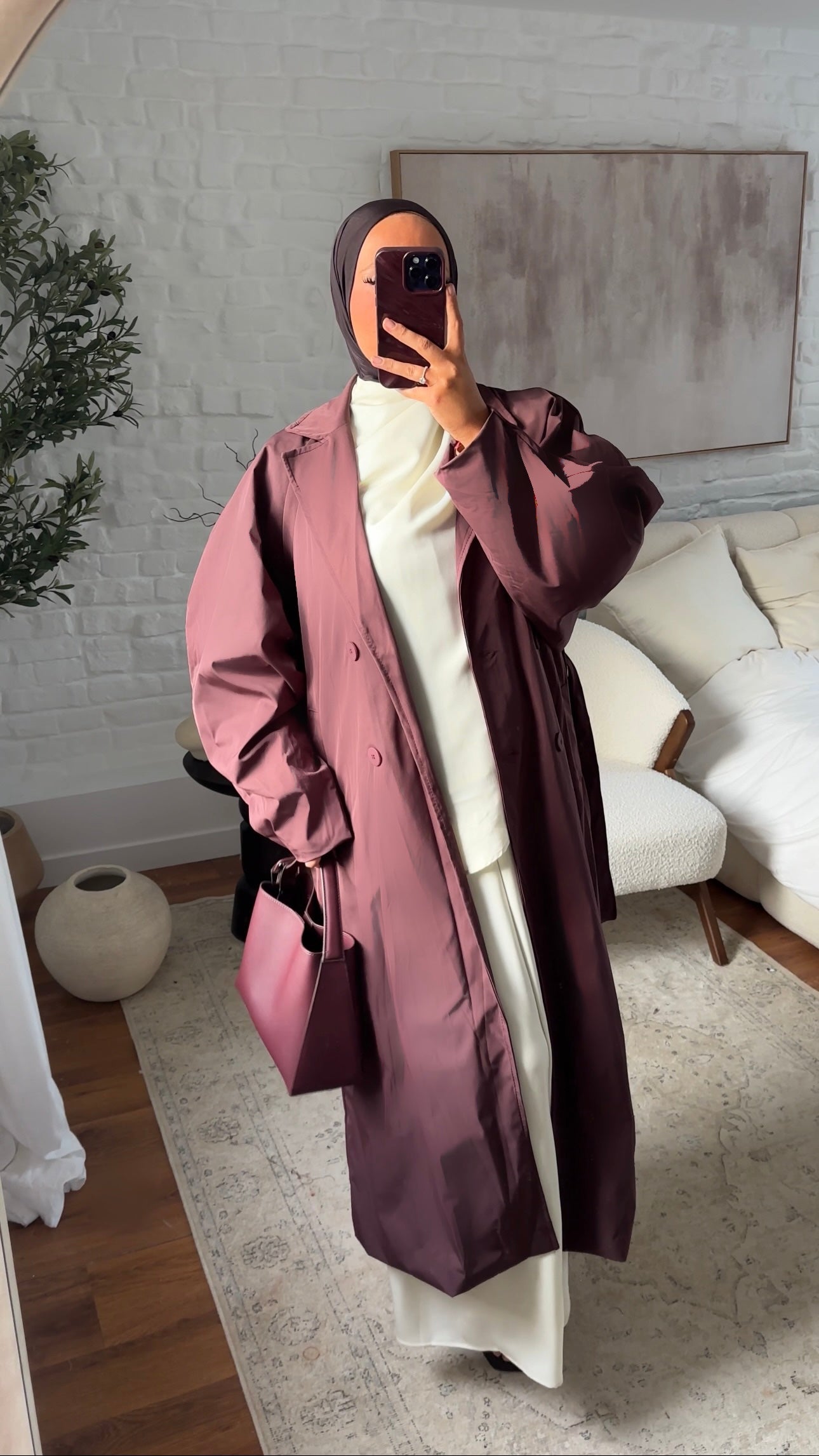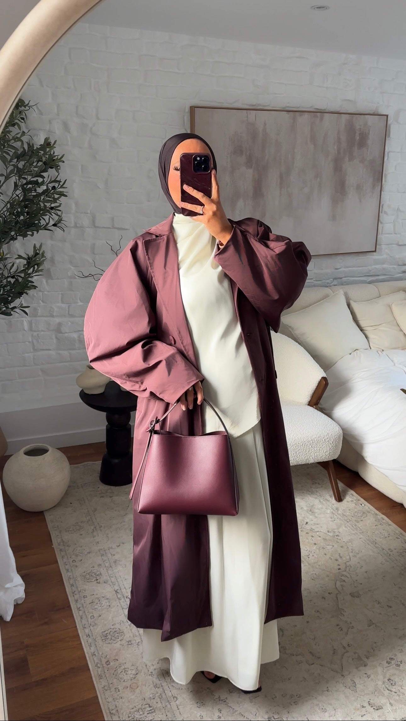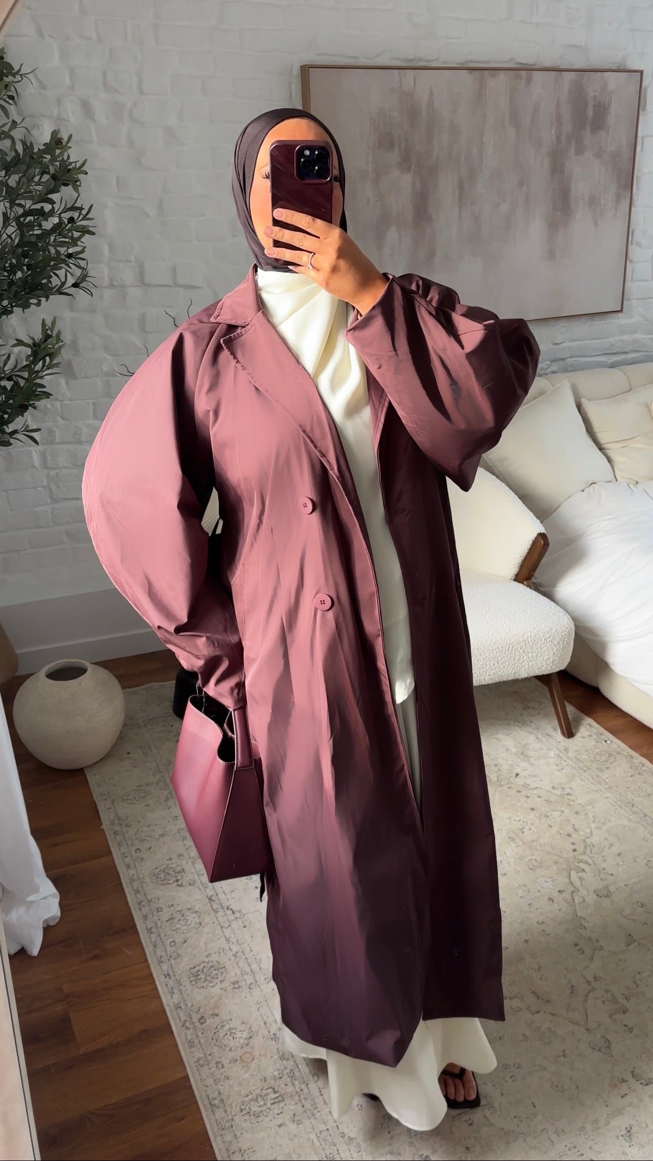 Trench ultra long à manches bouffantes | Bordeaux