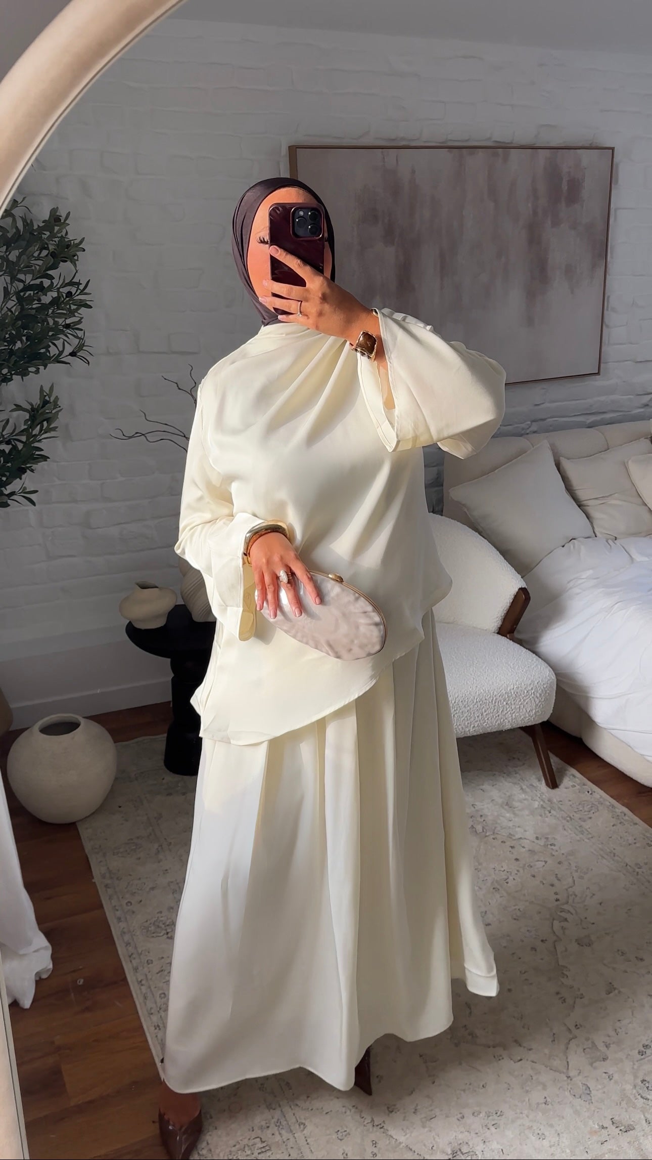 [CRÉATION] Ensemble satiné à jupe ultra longue et haut fluide | Écru